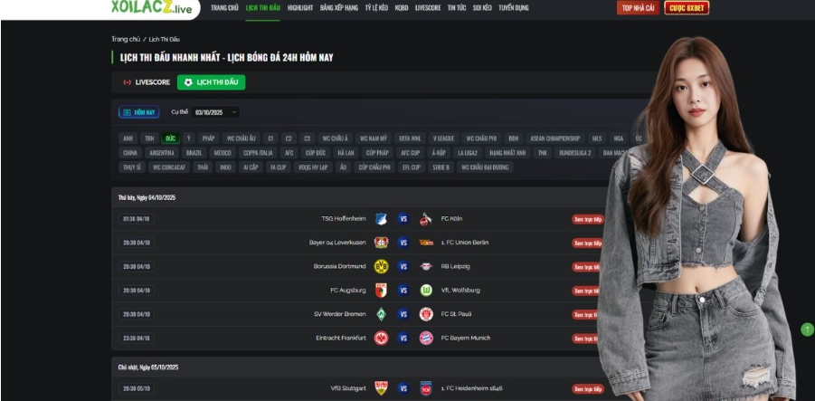 Xoilac stands out as a reliable and user friendly platform for football lovers who want to follow every detail of the German football schedule. The site provides accurate, up to date information about all ongoing and upcoming matches. Users can find schedules for the Bundesliga, Bundesliga 2, and other German tournaments in just a few clicks.
